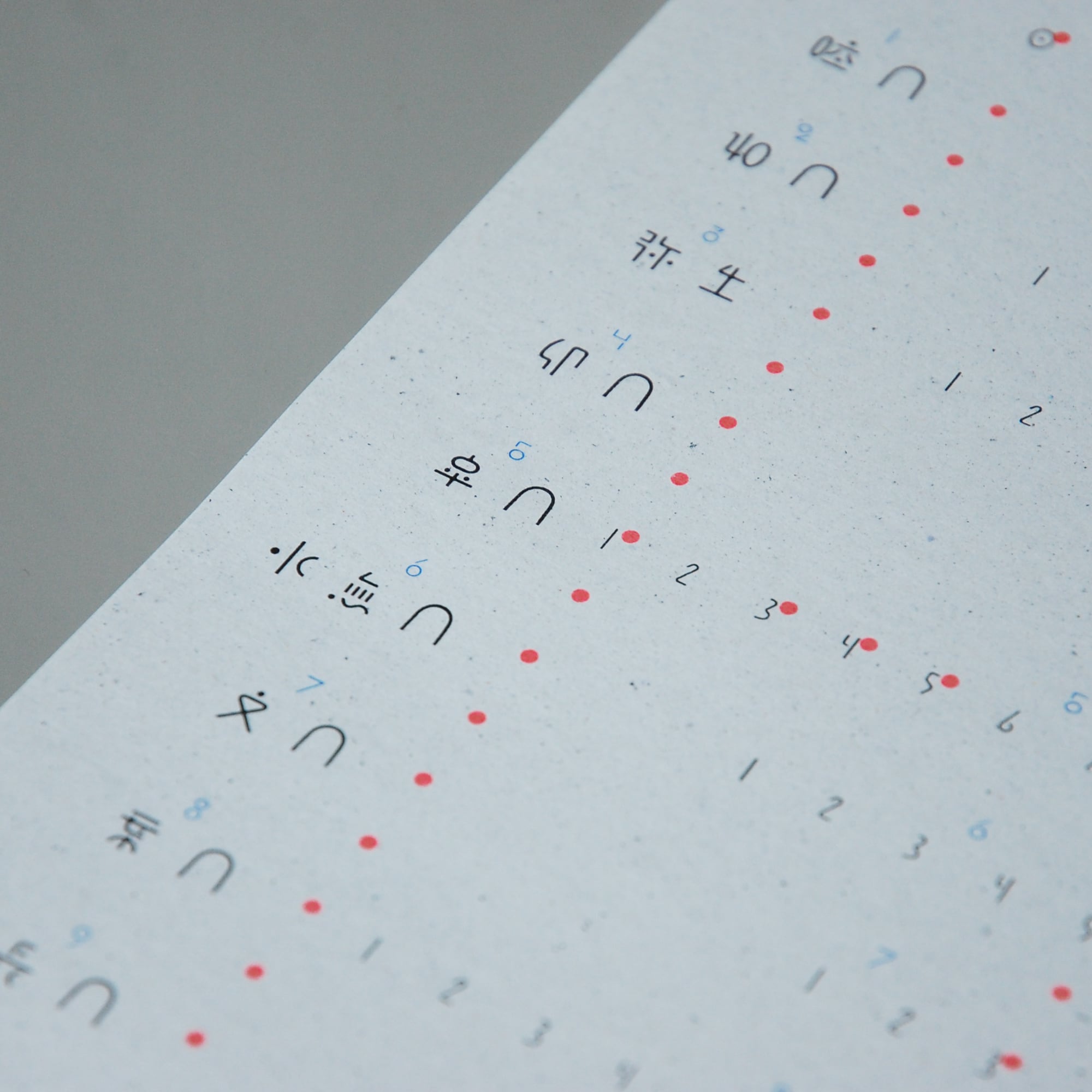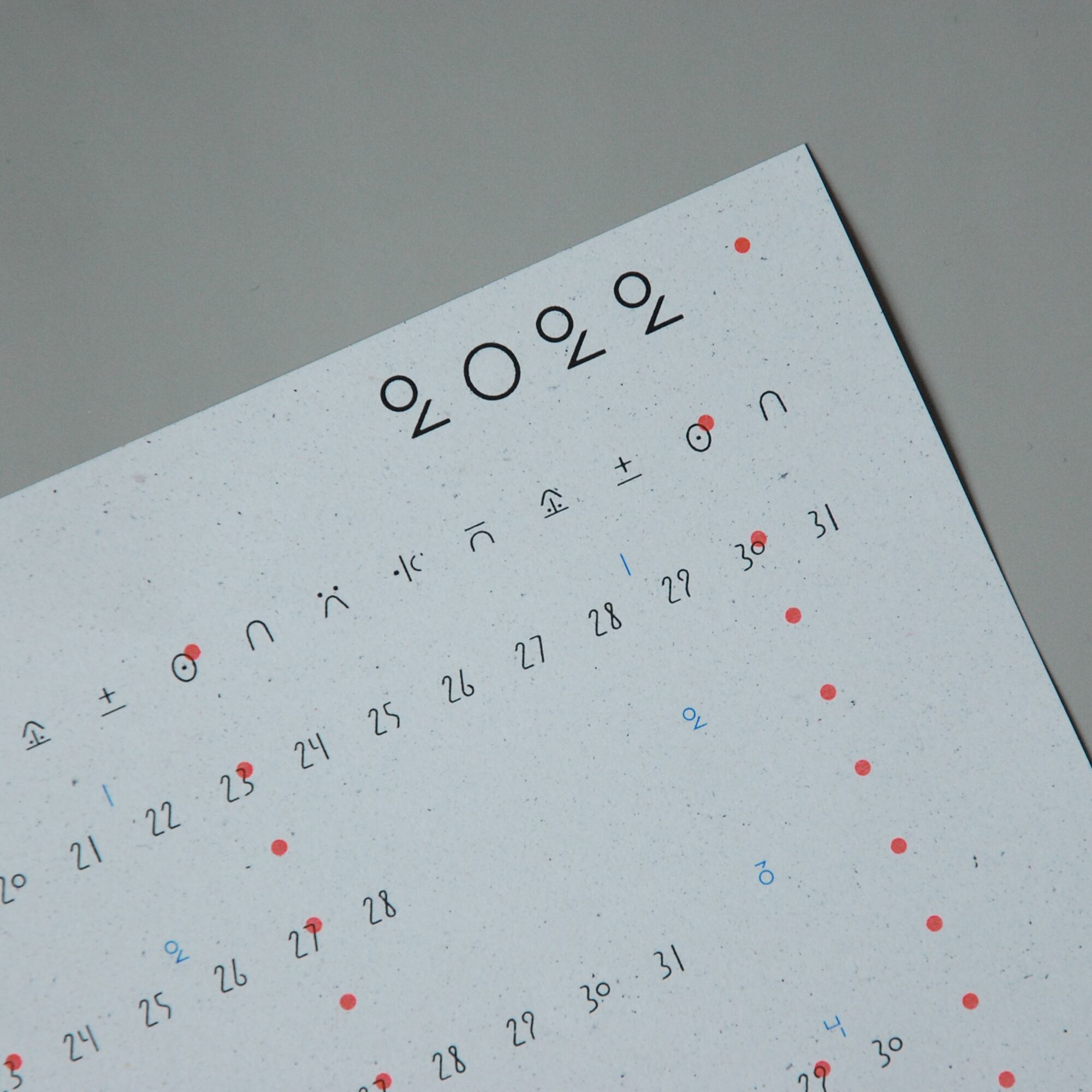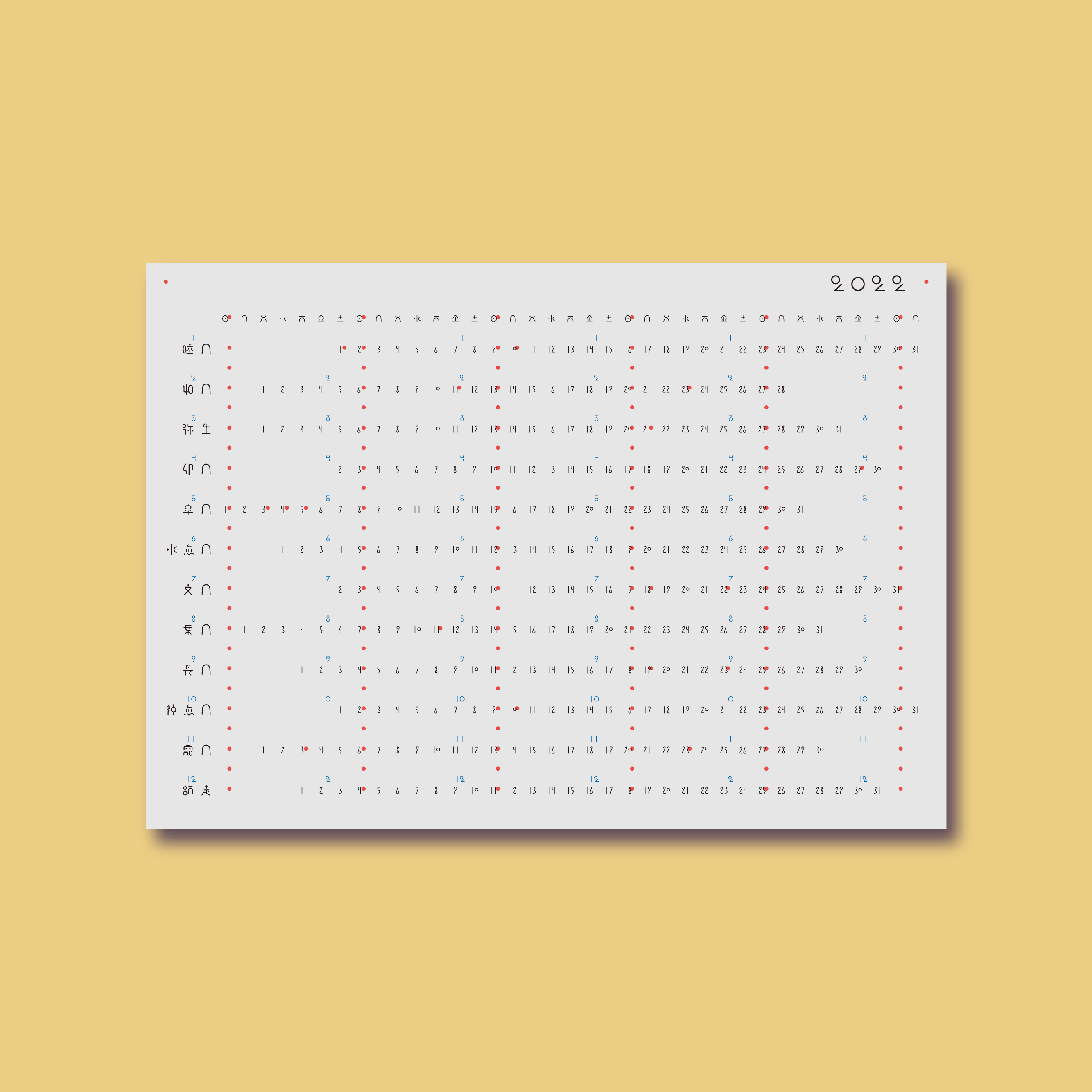オリジナルで制作したフォントをふんだんに使ったカレンダーを、1年をひとめで眺めることができるポスターにしました。