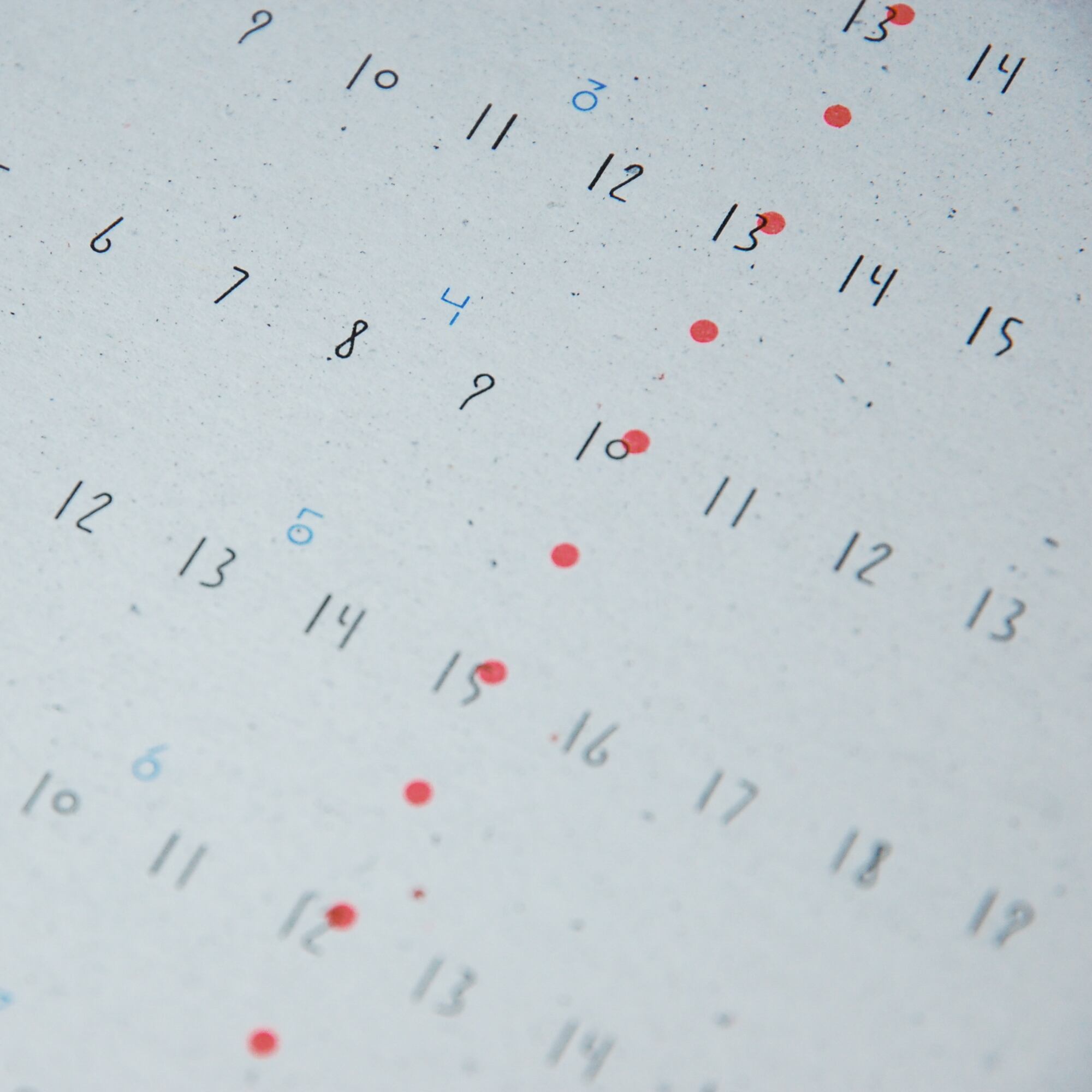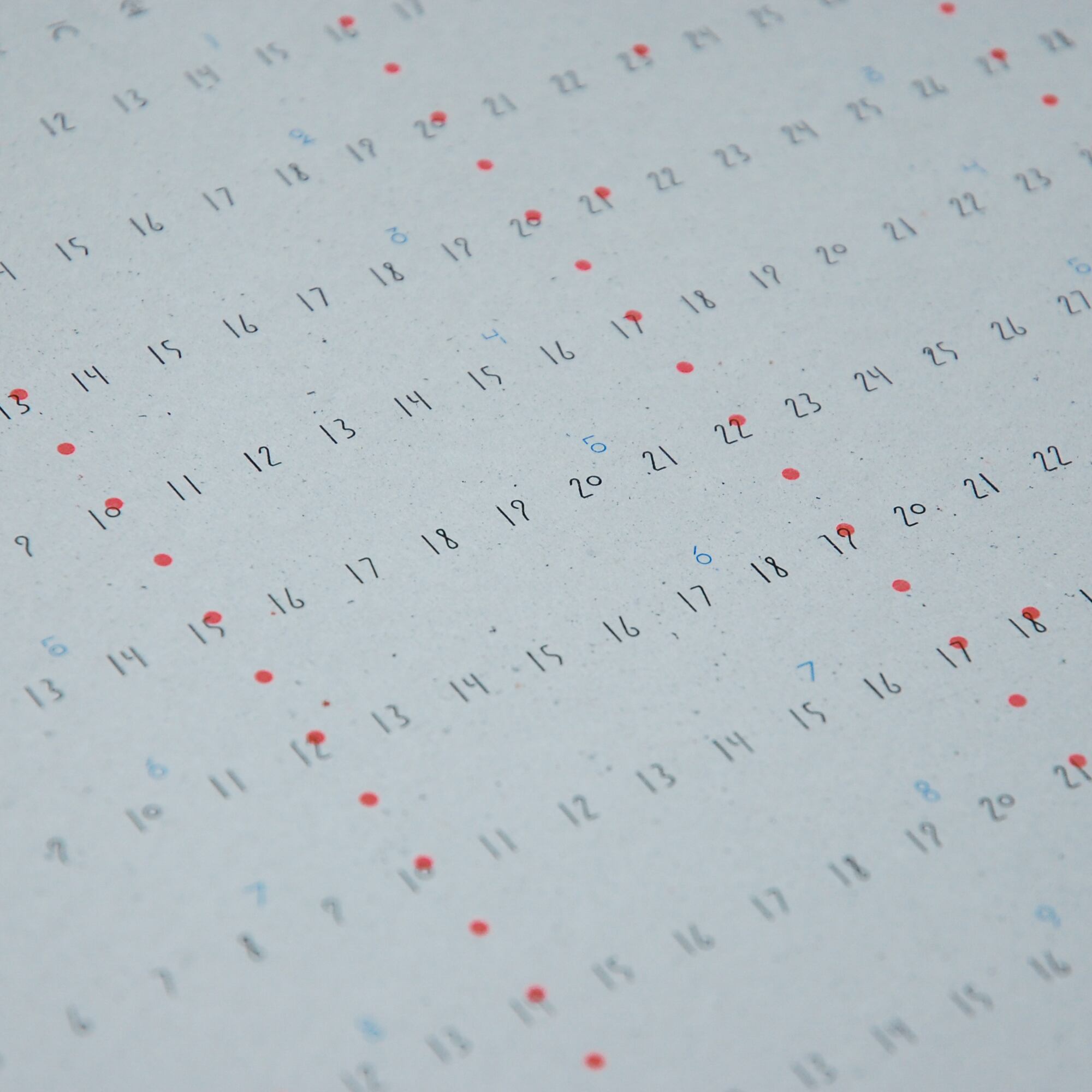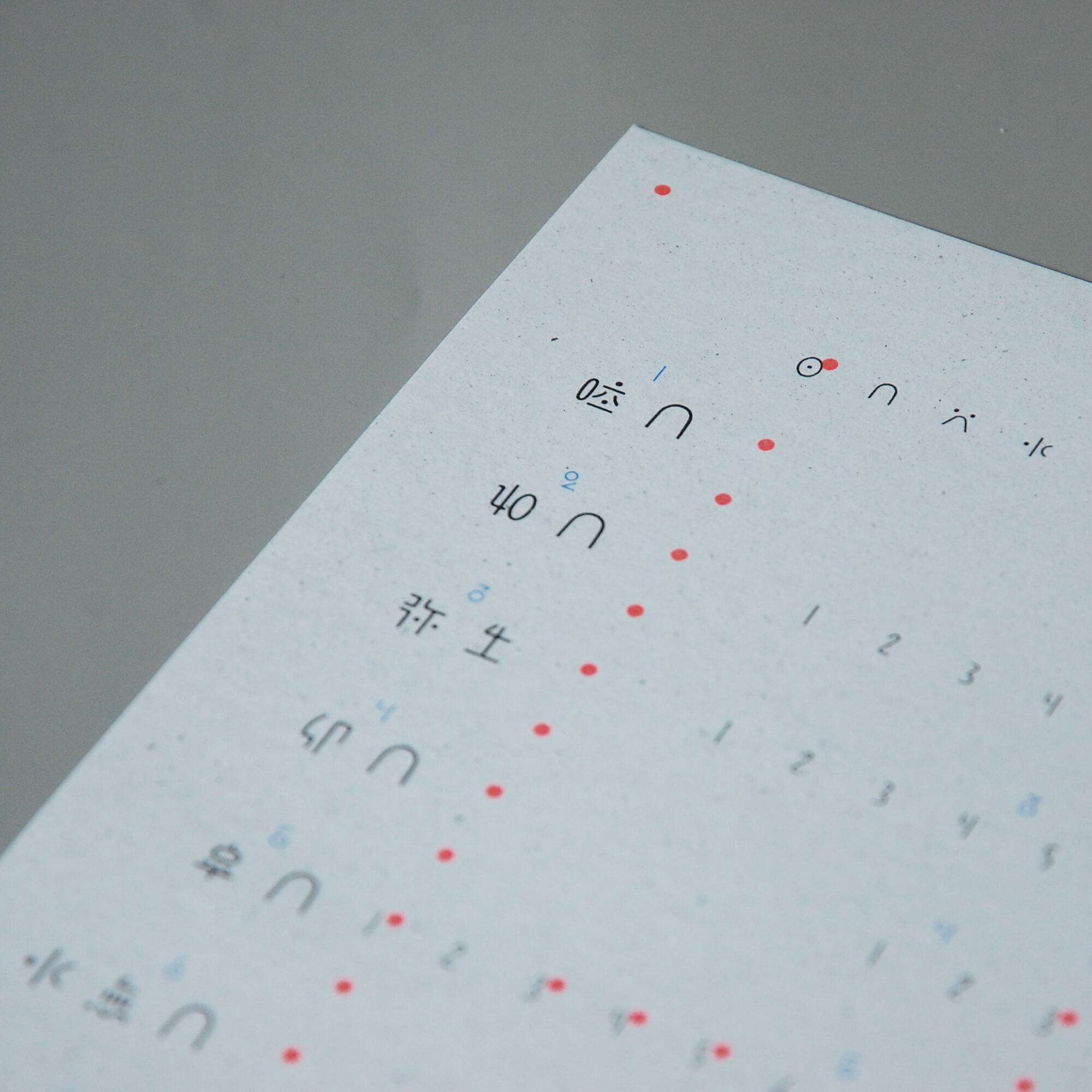 オリジナルで制作したフォントをふんだんに使ったカレンダーを、1年をひとめで眺めることができるポスターにしました。